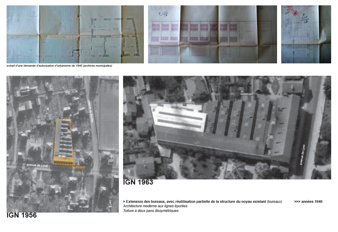 Dans les années 1940, les bureaux sont agrandis et font l’objet d’un projet à l’architecture moderne, qui s’étale sur l’intégralité de l’alignement sur l’avenue de Lyon. Le nouveau bâtiment aux lignes épurées englobe le noyau existant des bureaux.