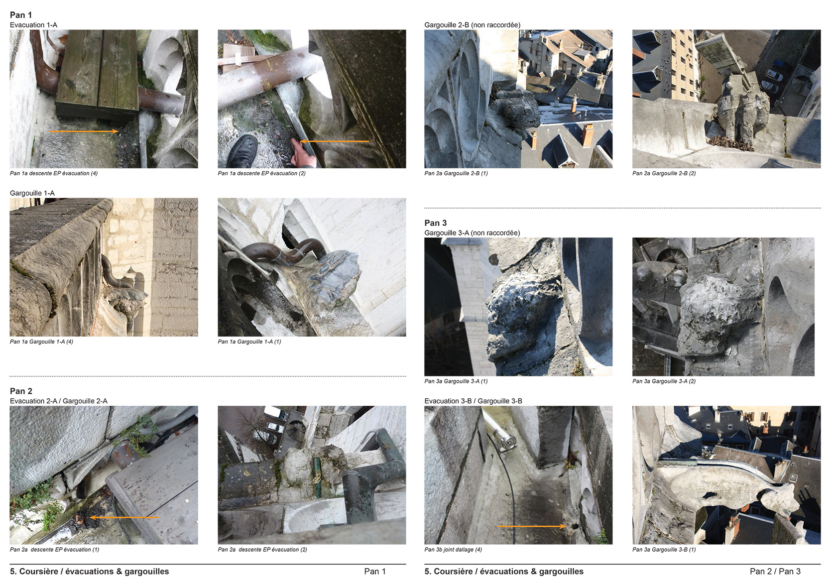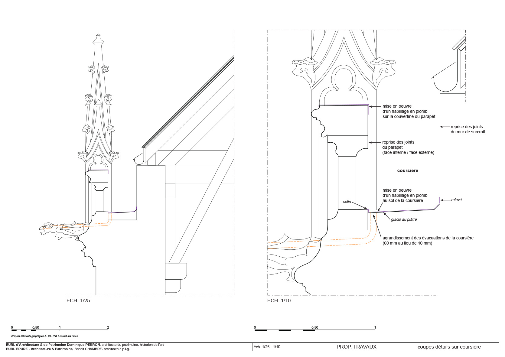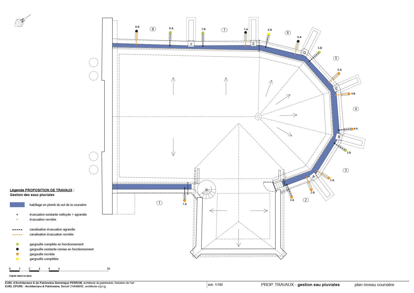 Une seconde partie propose la définition d’un protocole chiffré des travaux à engager pour enrayer les infiltrations constatées, puis restaurer les parties endommagées. Ces travaux s’inscrivent dans un ordre de priorité qui sera précisé dans un ultime chapitre.
