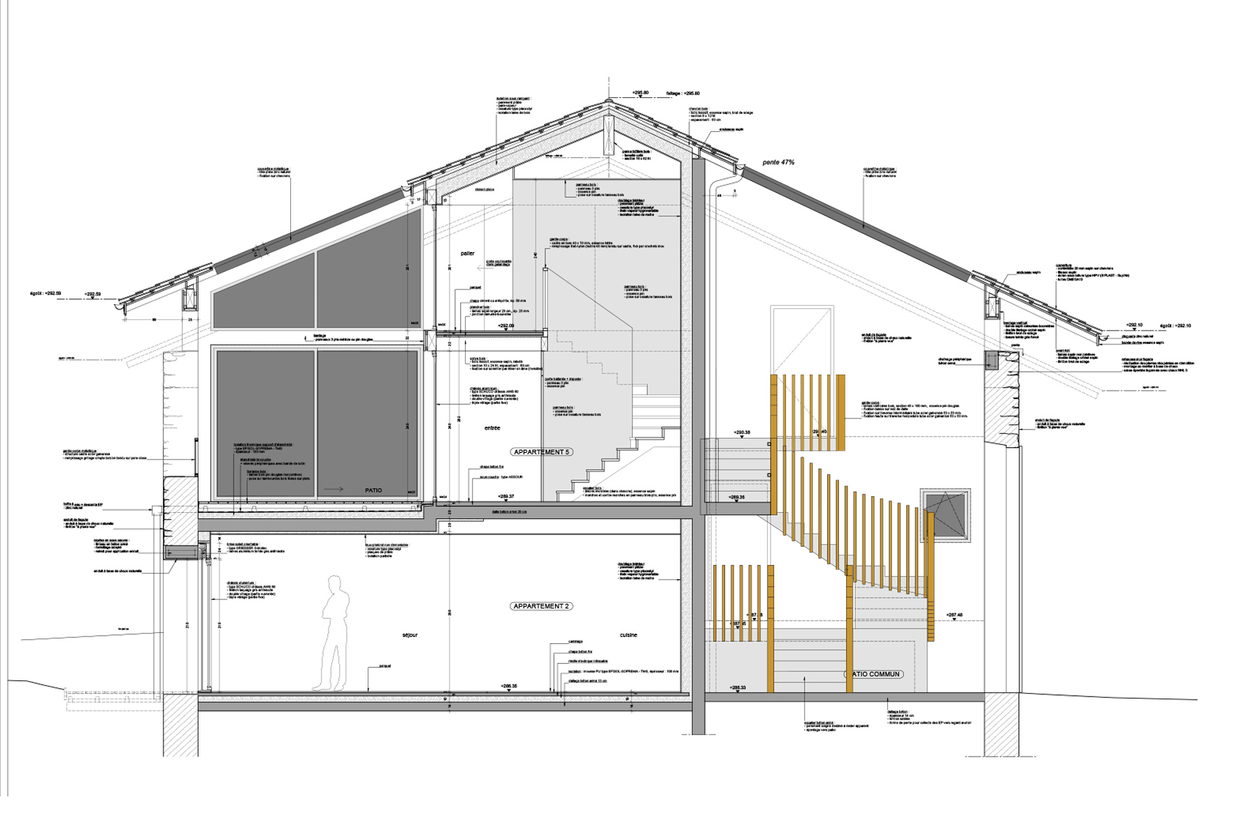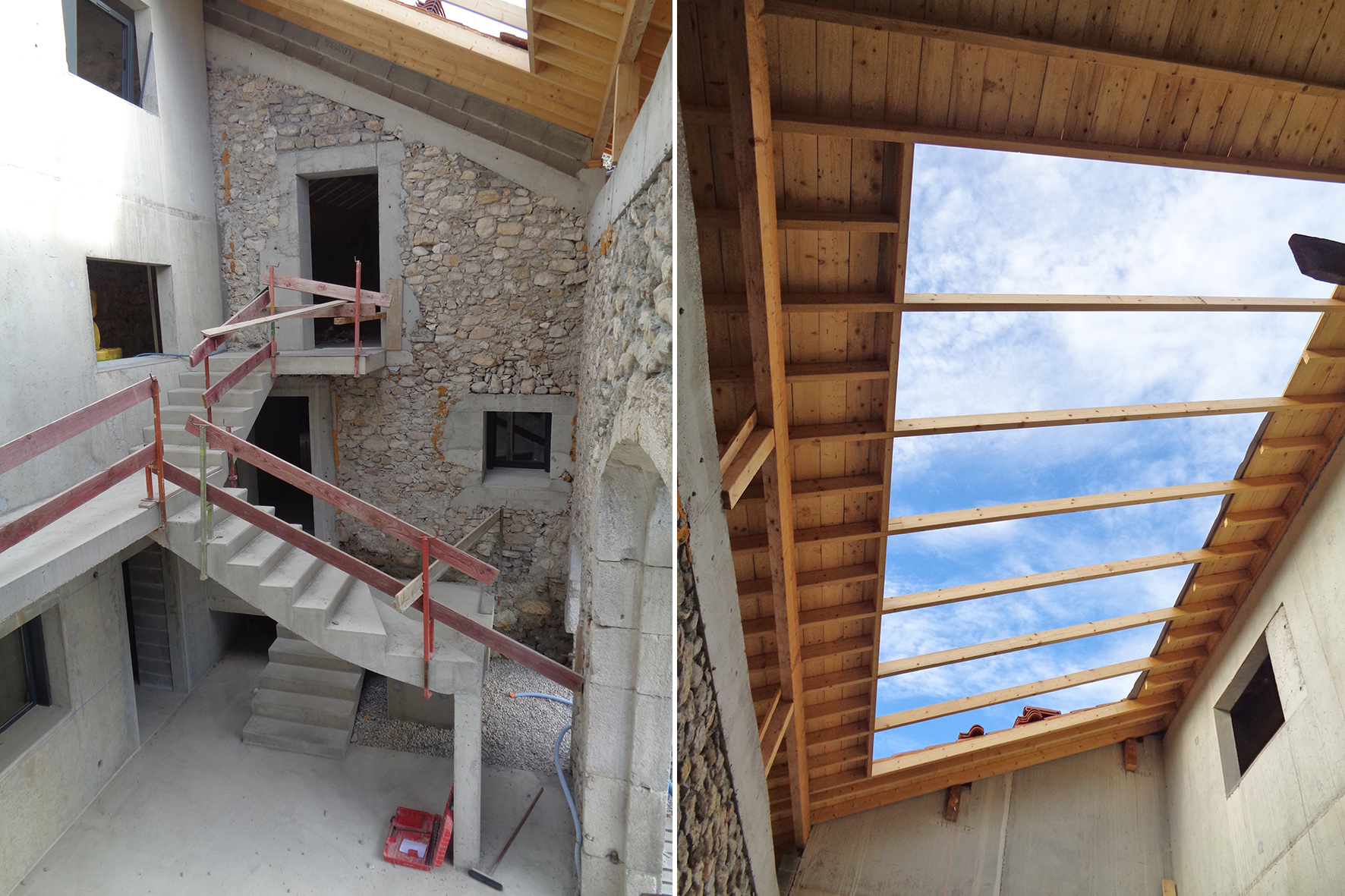 Les interventions architecturales se veulent discrètes pour accompagner la mise en valeur des éléments patrimoniaux remarquables, tout en acceptant l’apport d’indispensables éléments de confort contemporains : patios, balcons, ouvertures, etc …