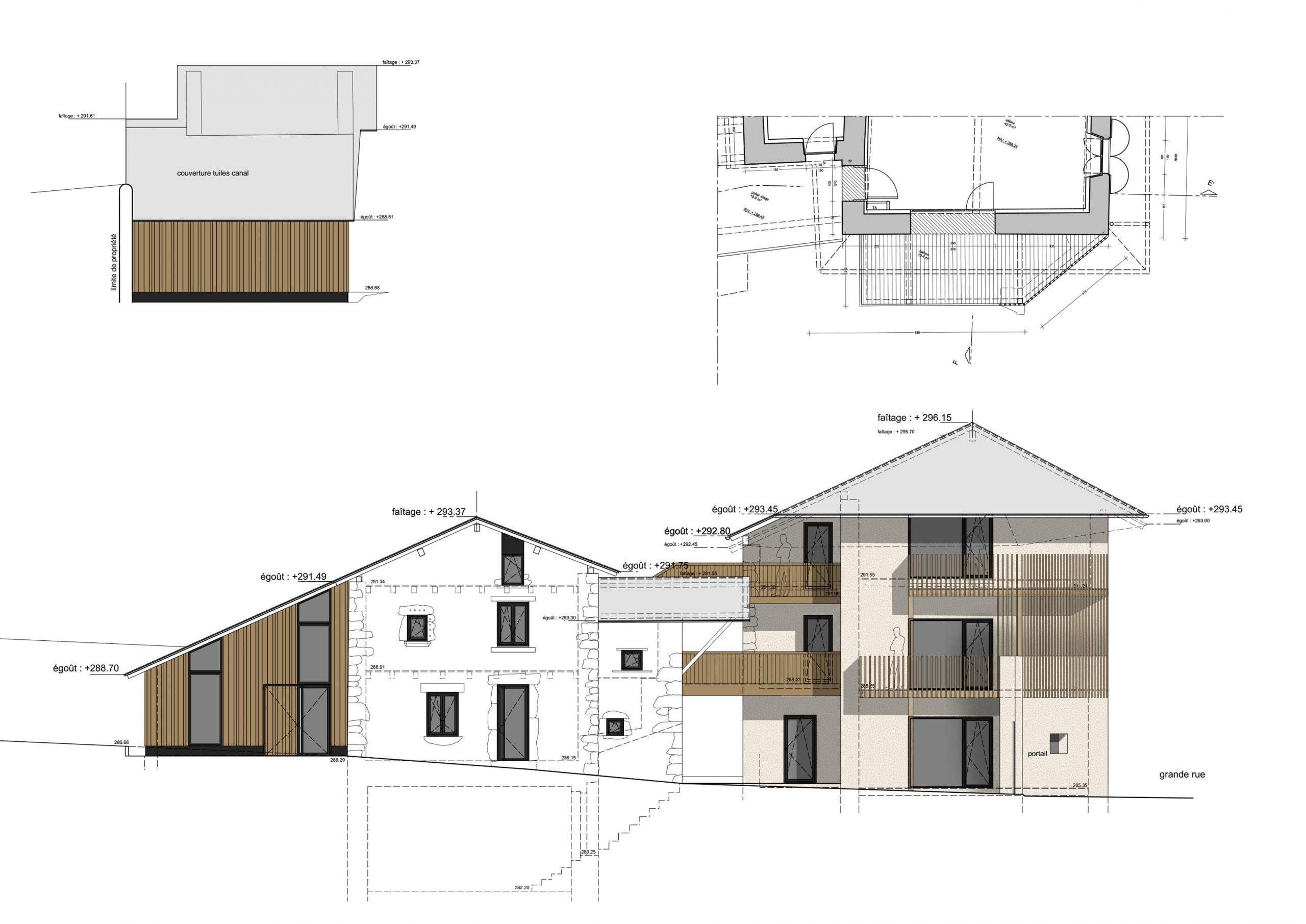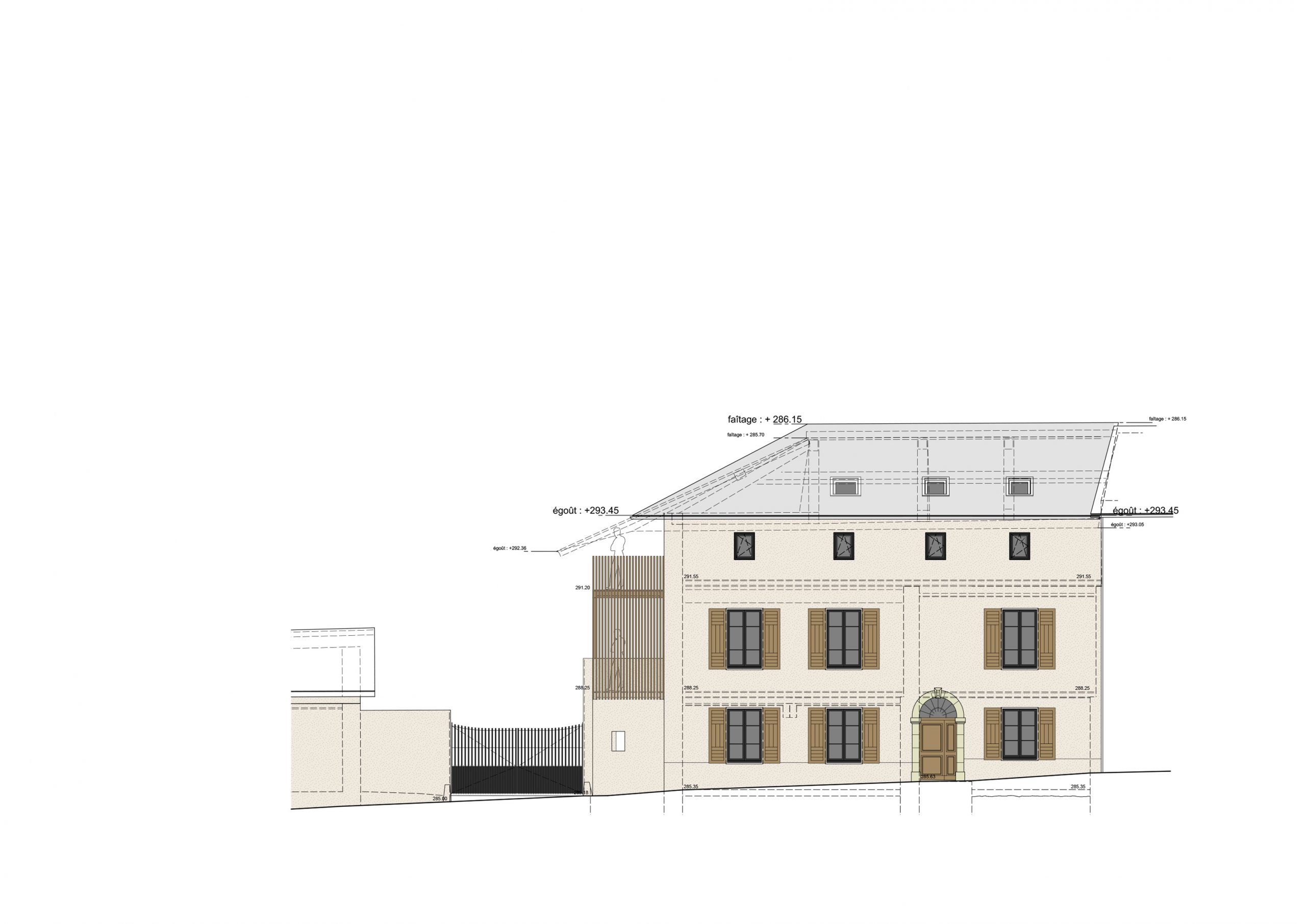 Missions confiées : relevé, analyse patrimoniale, avant-projet, projet et suivi de chantier (esquisse réalisée par ATELIER NAO)