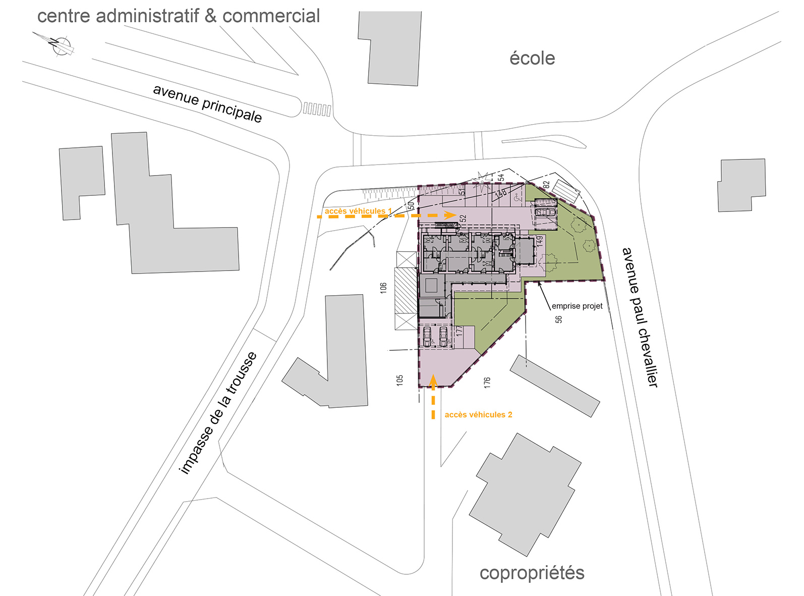 Ces logements s’organisent en triplex, afin de profiter au maximum de la volumétrie (notamment sous charpente) et de simplifier le traitement de l’acoustique entre appartements.