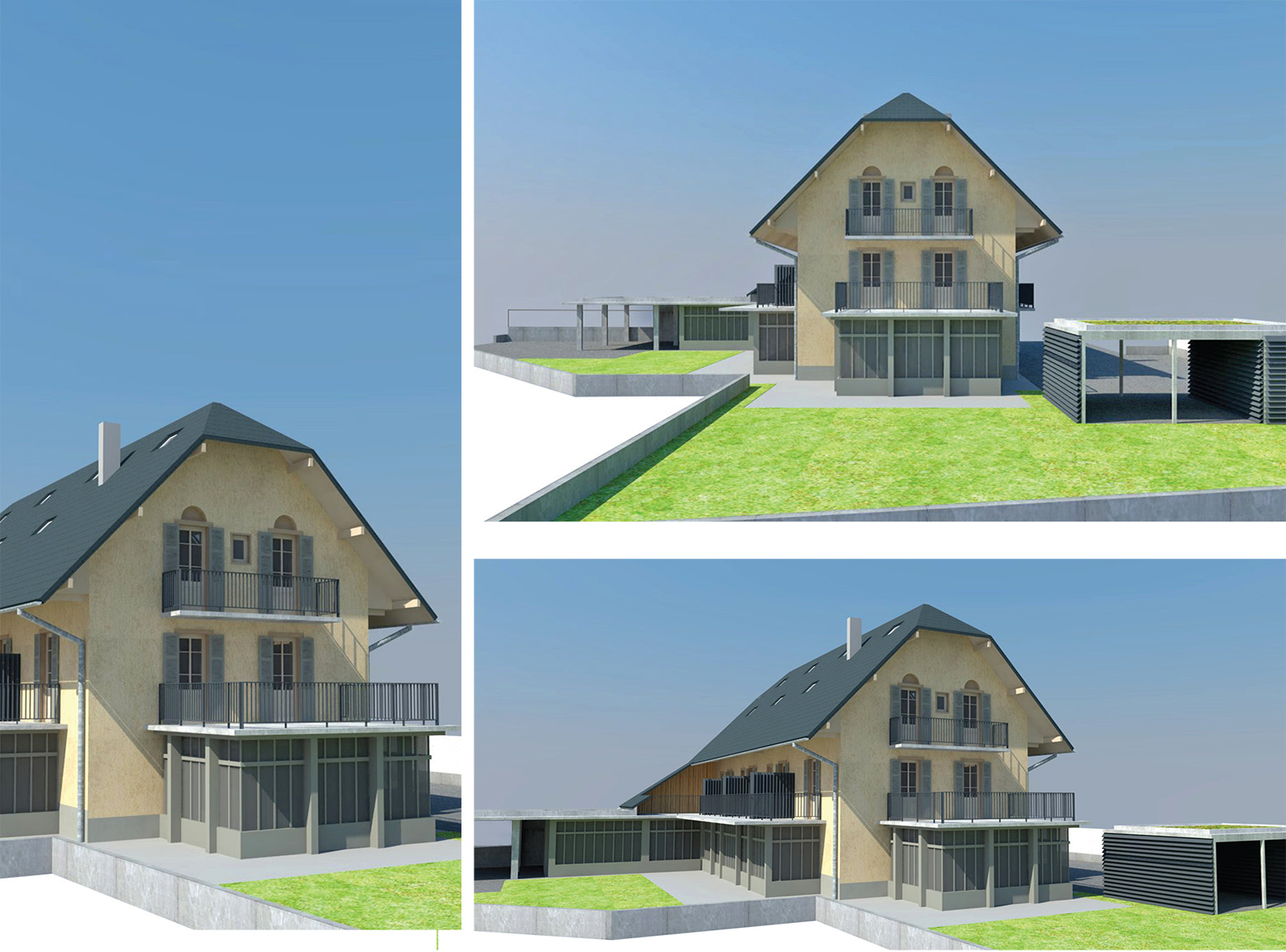 Un nouvel espace de vie est imaginé en façade Sud (séjour), tandis que la desserte des pièces dissimulées dans le volume existant s’opère par une fine extension en façade Ouest.