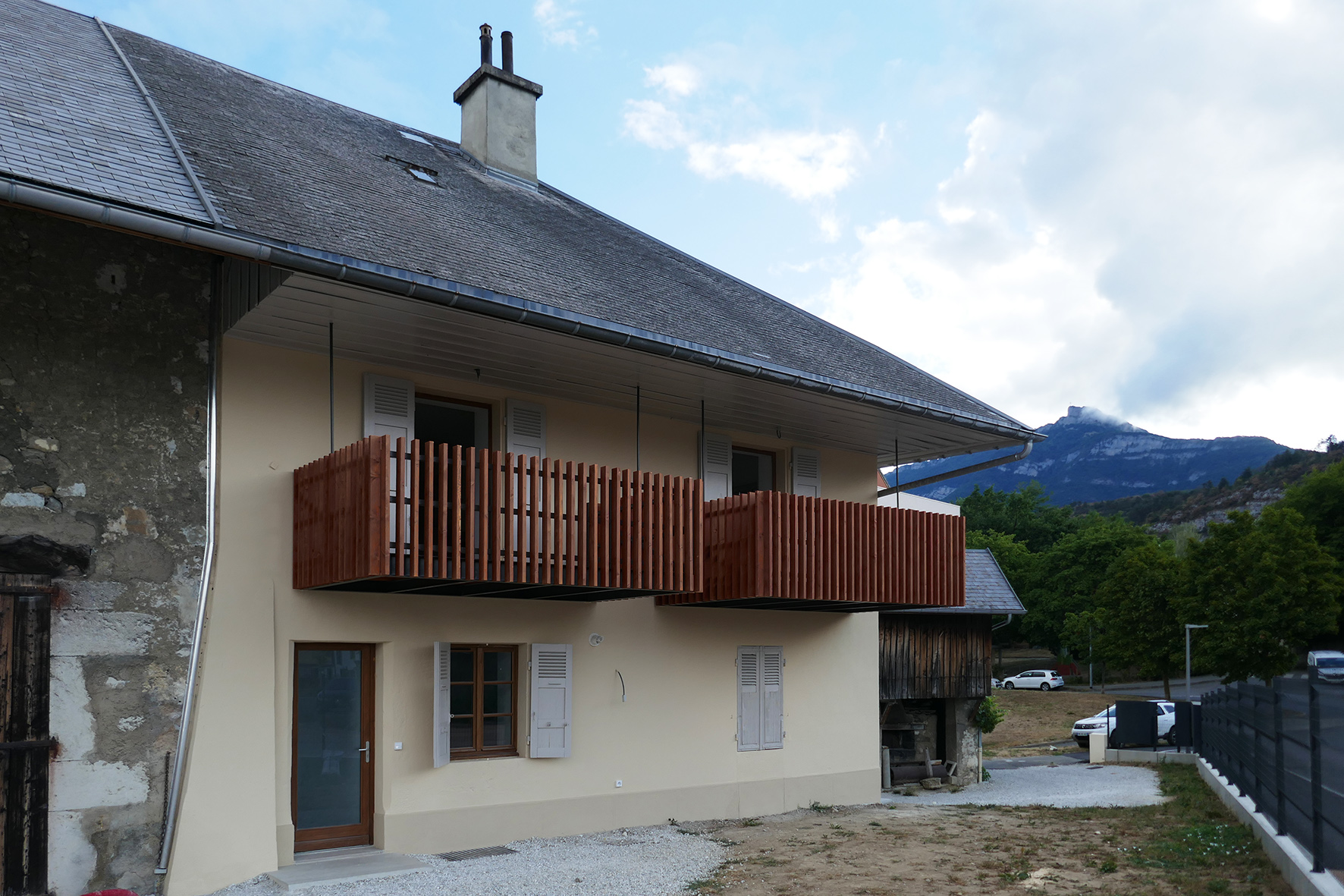 Ce projet consiste à réhabiliter une partie des grands volumes d’une ancienne ferme, bâtie sur les hauteurs de Chambéry, dans le respect de ses caractéristiques patrimoniales et historiques, en rénovant le logement existant et en créant deux appartements complémentaires dans les espaces disponibles.
