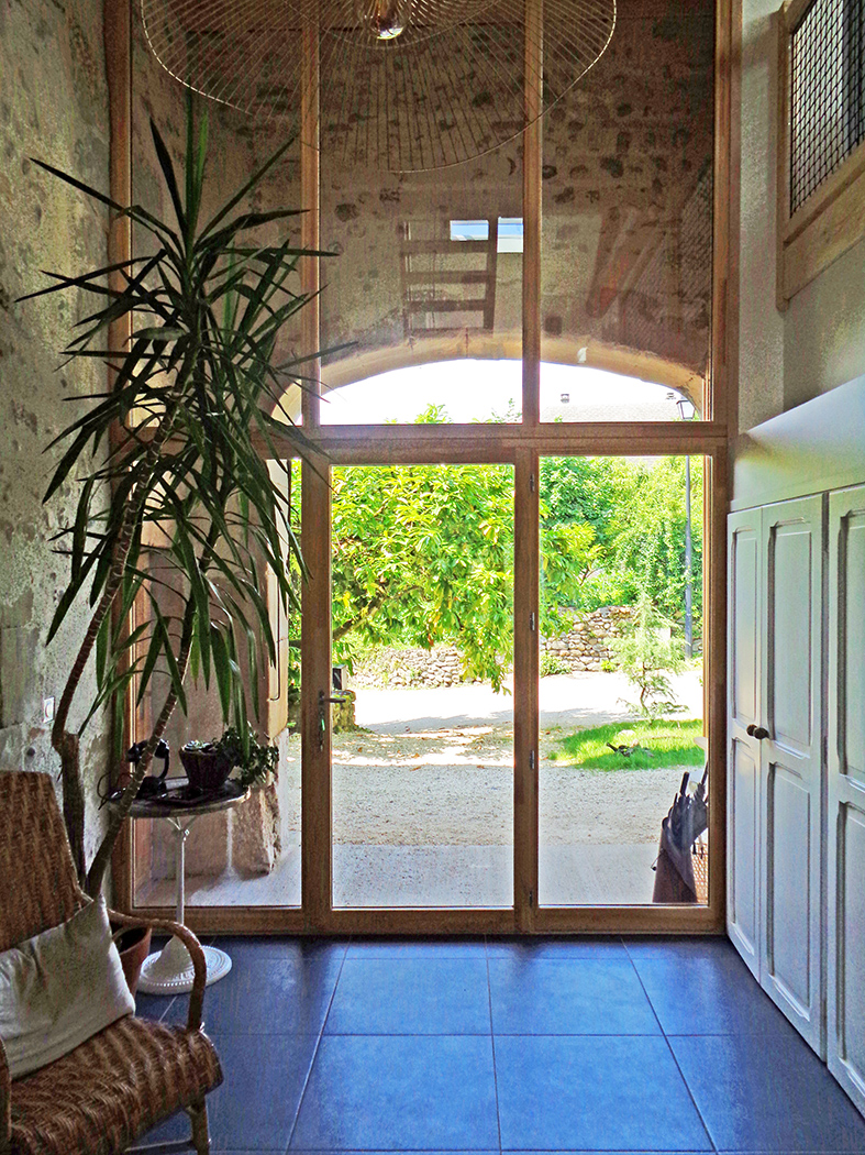 Les façades de la ferme sont conservées en l’état, sans intervention sur les enduits de façades, qui présentent une patine esthétique, qui trace les différentes périodes d’extensions et de réhabilitations de la ferme. Les éléments parasites (ancienne installation électrique) sont purgés.