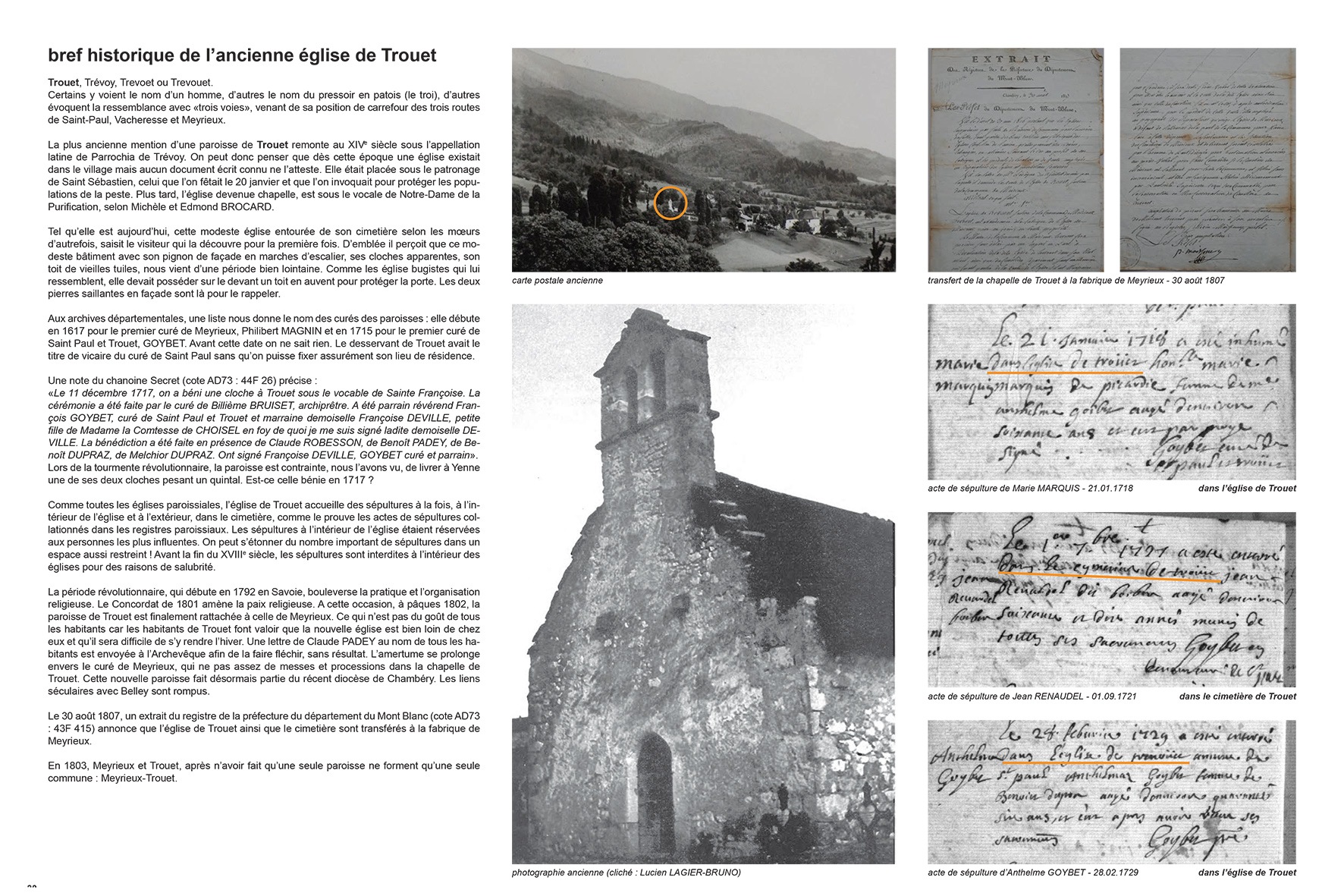 La période révolutionnaire, qui débute en 1792 en Savoie, bouleverse la pratique et l’organisation religieuse. Le Concordat de 1801 amène la paix religieuse. A cette occasion, à pâques 1802, la paroisse de Trouet est finalement rattachée à celle de Meyrieux. En 1803, Meyrieux et Trouet, après n’avoir fait qu’une seule paroisse ne forment qu’une seule commune : Meyrieux-Trouet.