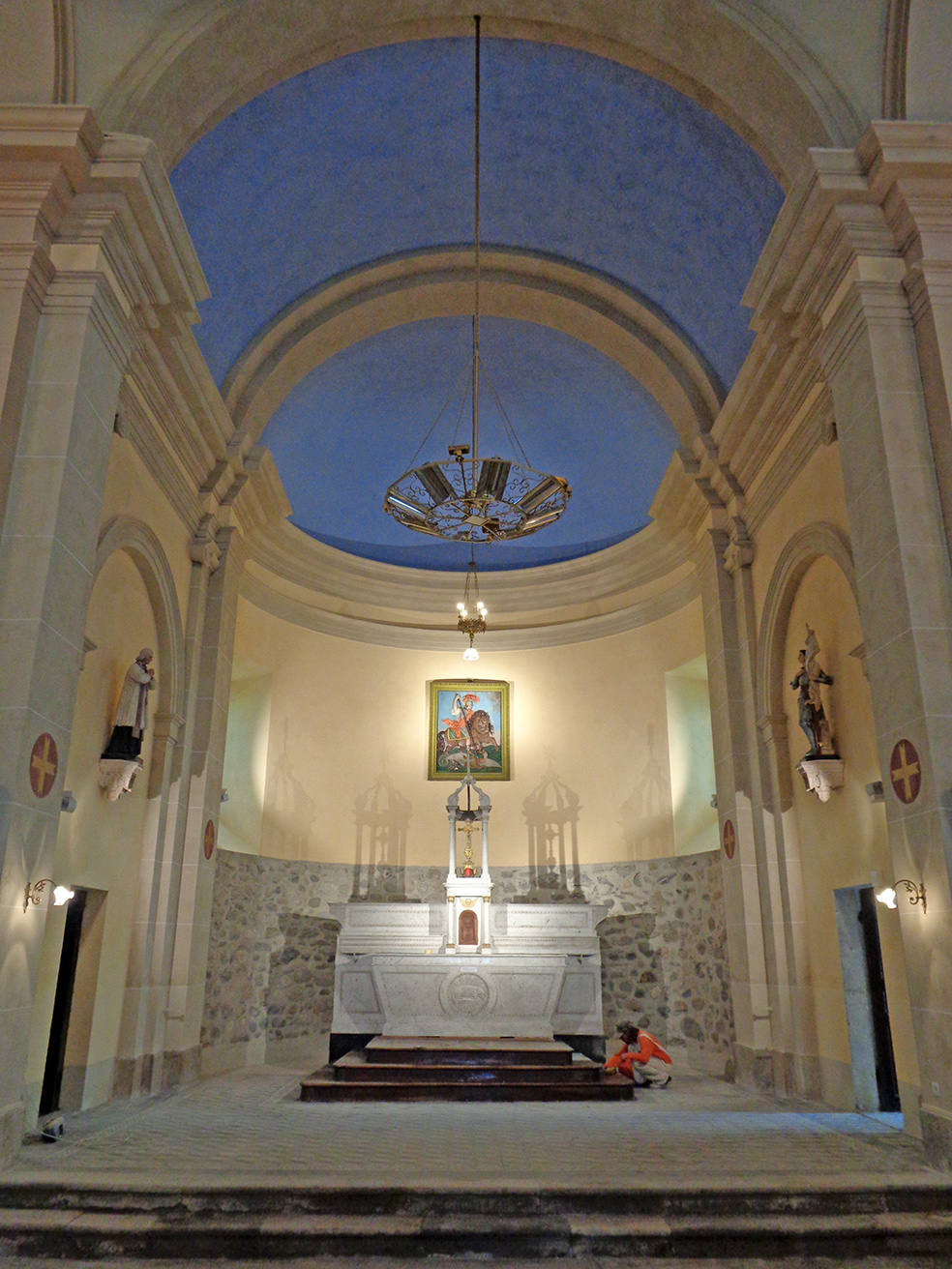 La réfection intérieure s’accompagne d’une reprise de l’éclairage de mise en valeur, destinée notamment à valoriser la présentation du tableau de saint Georges.