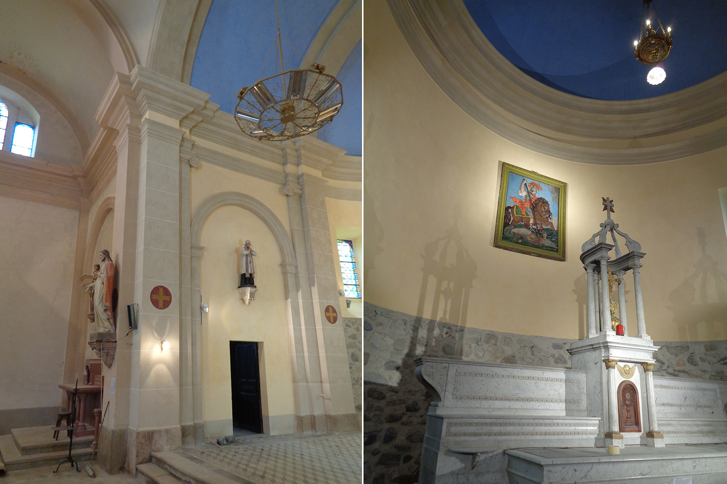 Les travaux intérieurs se cantonnent à l’emprise du chœur de l’église, dans lequel est prévu de remettre en place le tableau de saint Georges terrassant le dragon (objet inscrit au titre des monuments historiques).
