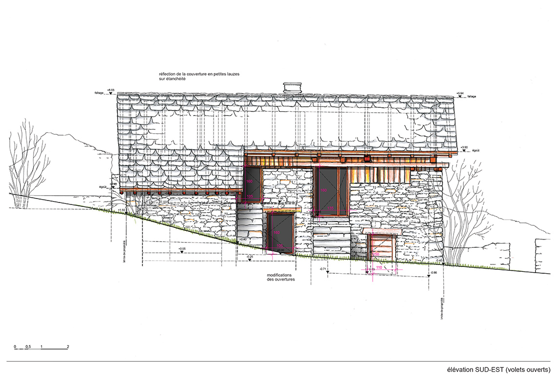 Les pièces présentées sont tirées de la demande d’autorisation préfectorale de restauration d’un ancien chalet d’alpage.