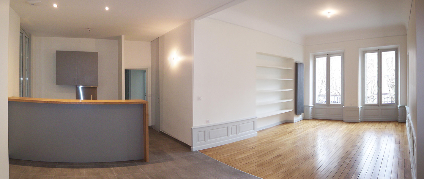 Cet appartement occupe un bel immeuble des années 1930 qui borde le boulevard de la Colonne à Chambéry. Aménagé dans les années 1970 en cabinet médical, il avait perdu ces caractéristiques architecturales originelles.