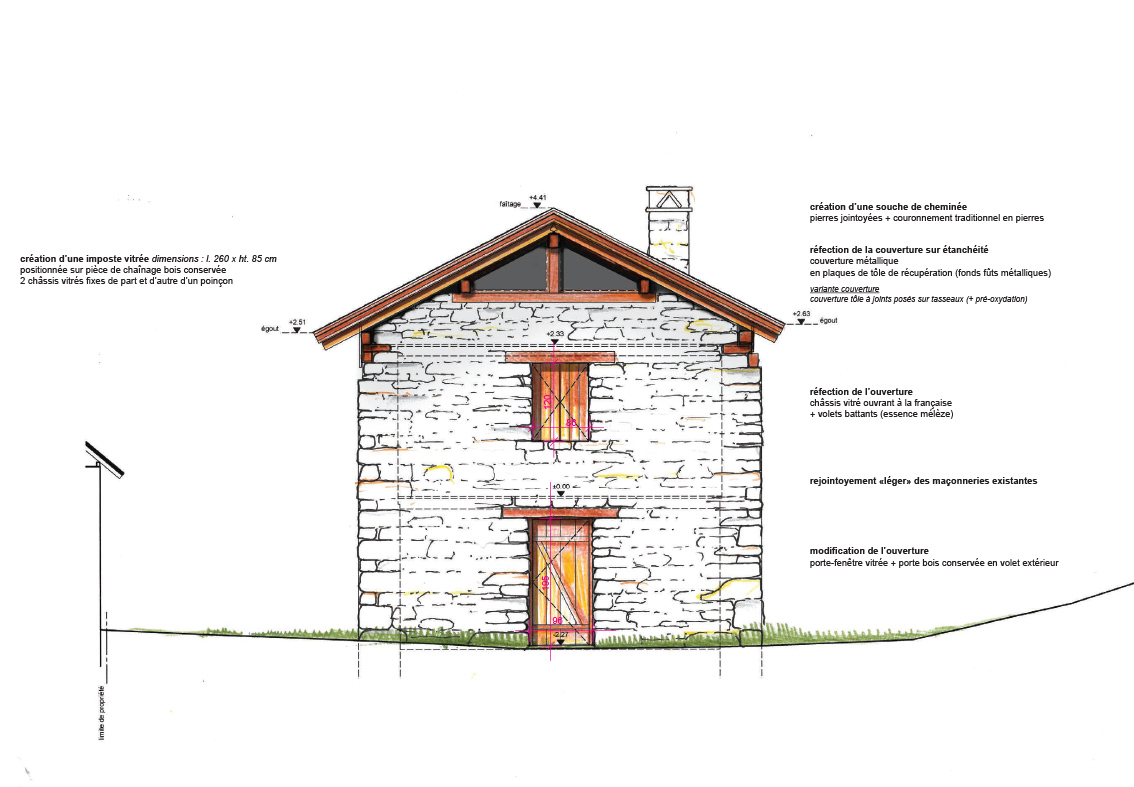 Les pièces présentées sont tirées de la demande d’autorisation préfectorale de restauration d’un ancien chalet d’alpage.
