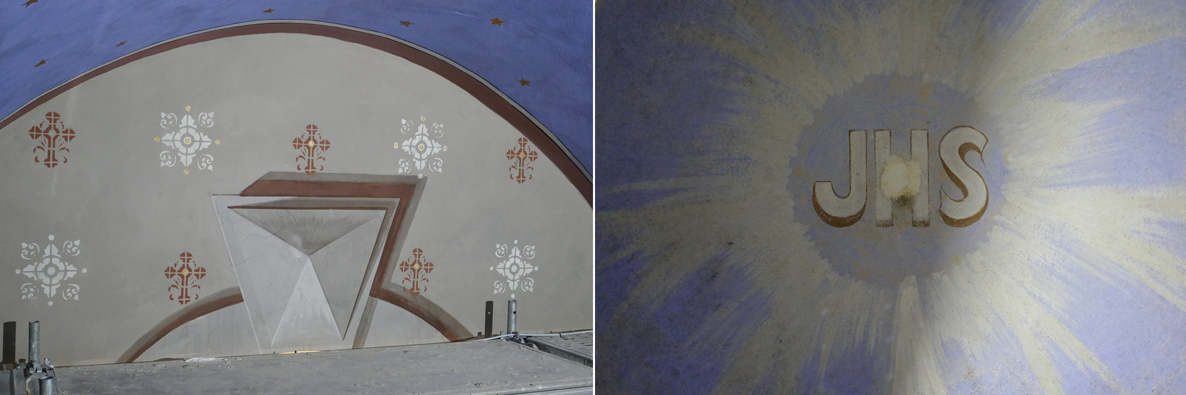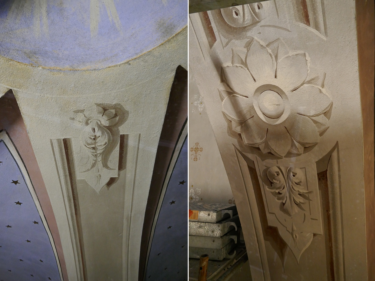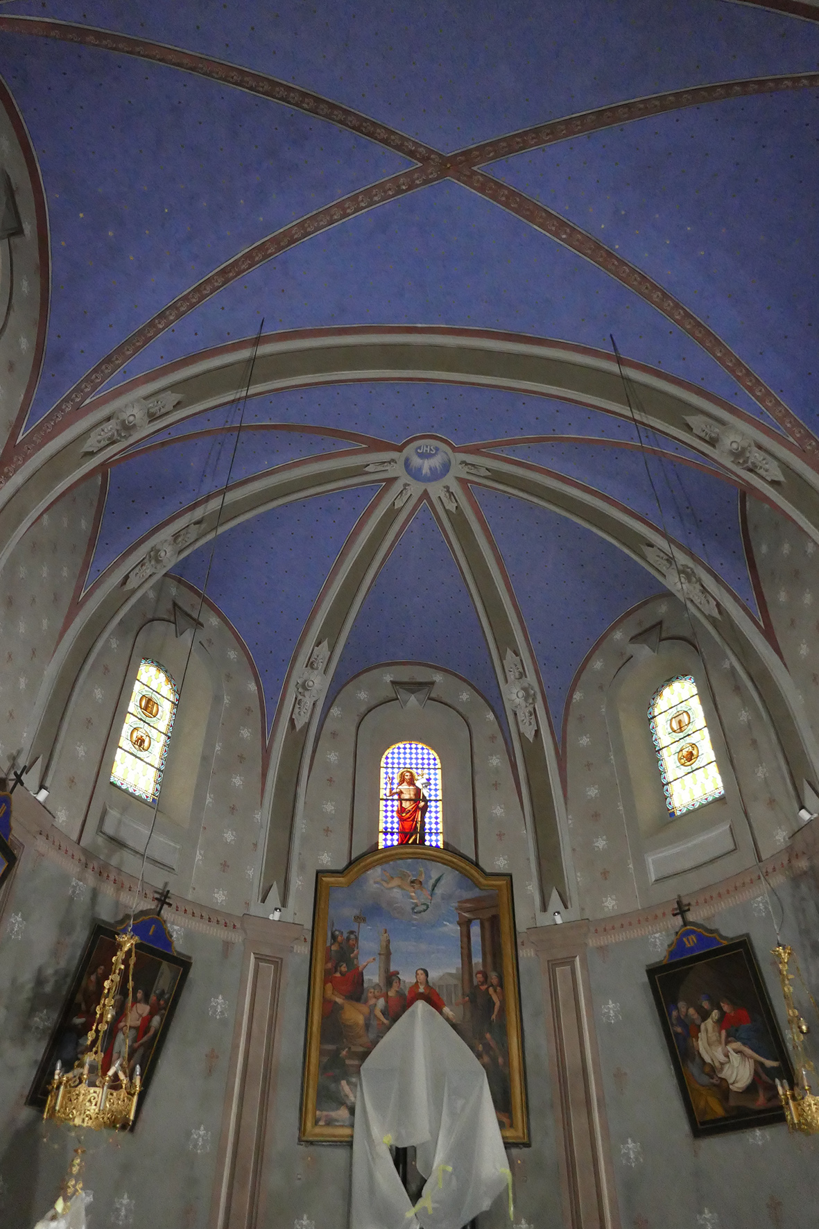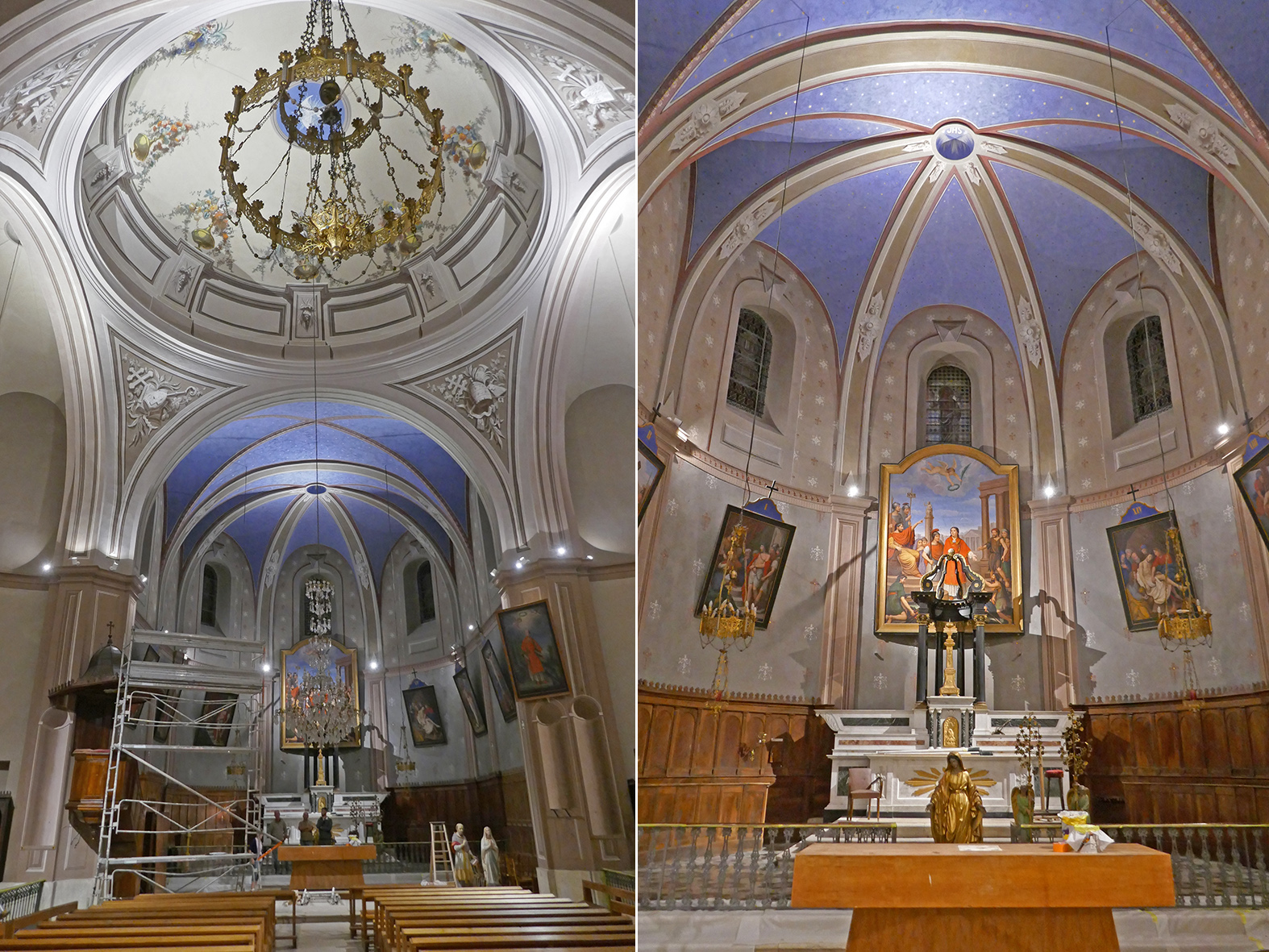 Cette campagne de travaux consiste à restaurer les enduits et peinture murales de l’ensemble de l’église, dégradés par d’anciennes infiltrations aujourd’hui traitées. La restauration des enduits et des peintures murales comprend : la réfection des enduits pulvérulents (purge, reprise et consolidation), le bouchage des fissures et des micros fissures, le dépoussiérage, la restauration du décor puis la réintégration picturale des parties manquantes. Le programme de travaux prévoit également la restauration des boiseries, ainsi que la réfection de l’électricité couplée à une mise en valeur par l’éclairage.