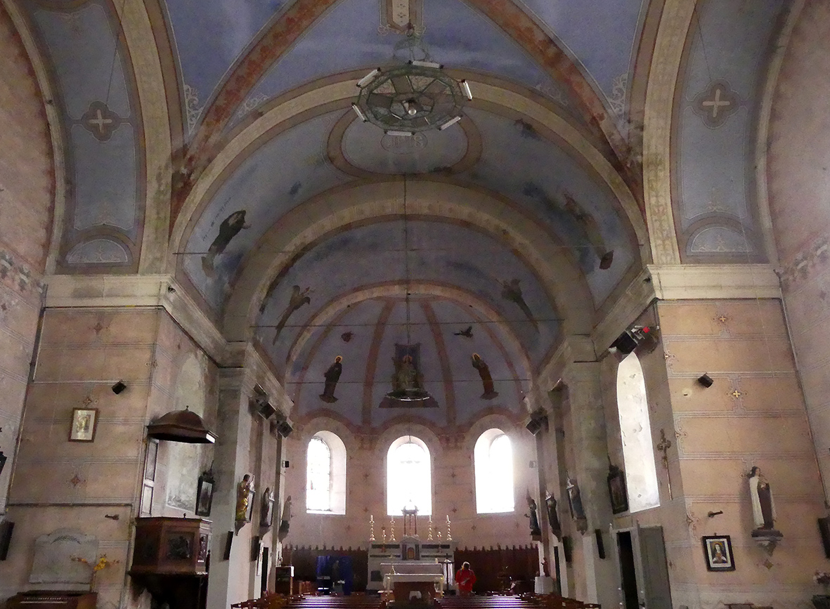 Ce nouvel édifice s’inscrit dans une large campagne de reconstruction des églises (1825-1840), sous le règne du style néo-classique. Il est orné de décors peints de très belle facture. Les décors peints intérieurs semblent dater de la période de travaux de 1882-1887. Ils sont visibles dans leur état originel sur une carte postale ancienne.