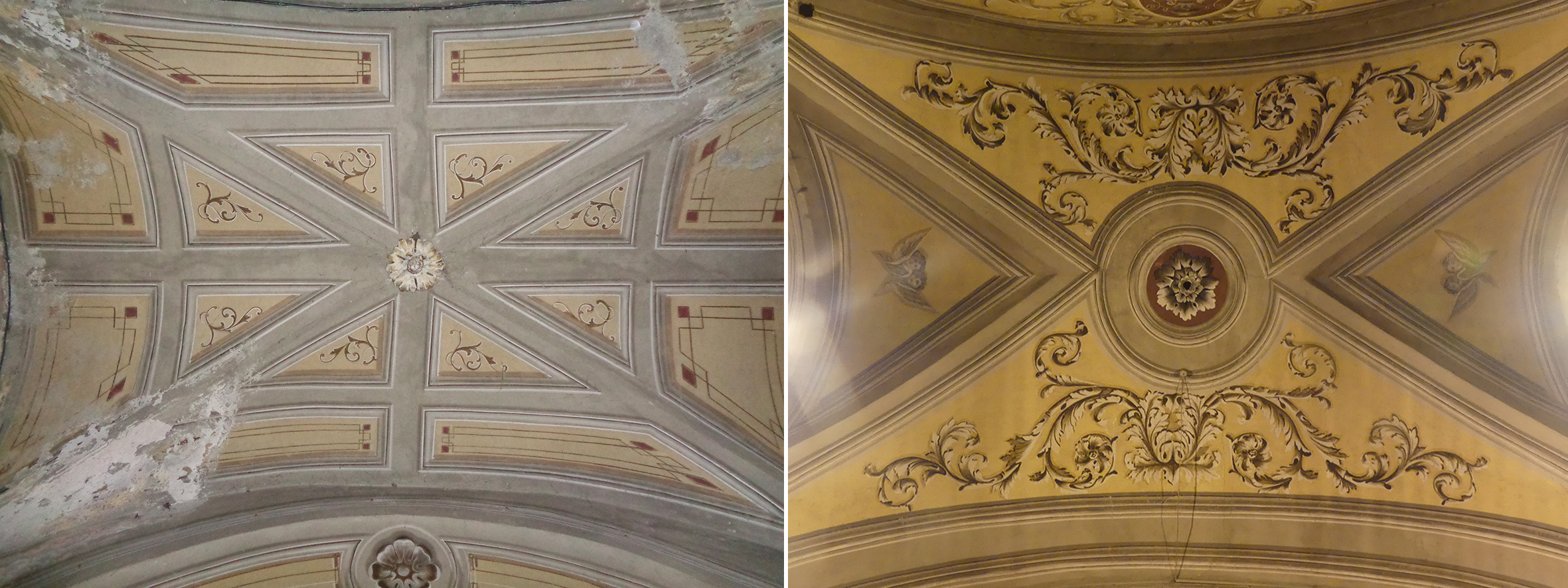 En conclusion de la campagne de sondages, Thierry VITALONI précise que « La description du décor que nous avons dans l’étude préalable de Mr Grange-Chavanis correspond au décor actuellement visible, œuvre de MACCHIONE Dante (1926). Il est possible cependant, que l’artiste se soit inspiré de quelques éléments décoratifs de cette époque. Les différents sondages que nous avons entrepris mettent à jour un décor qui correspondrait à la campagne de 1856. ».